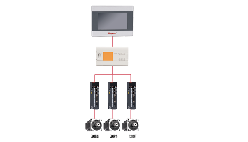 睿能X5系列PLC帶有電子齒輪功能,可實現多軸同步運行;同時自帶旋切功能快,可方便實現定長切割,并保證切割精度。
